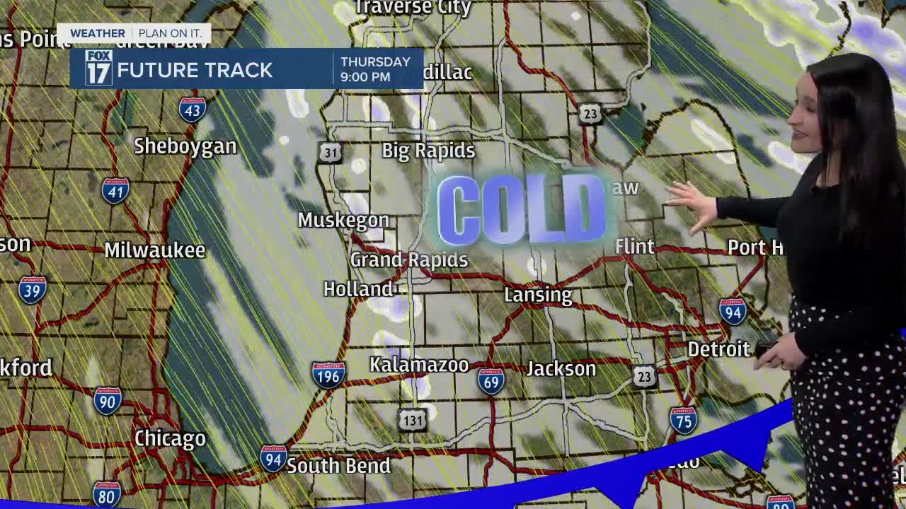 WEST MICHIGAN — The forecast from FOX 17 Meteorologist Haleigh Vaughn: Get ready for another cold night, West Michigan! Mostly clear to partly cloudy skies are in the forecast tonight as temperatures dive into the teens. Thursday begins with moments of sunshine before a cold front approaches in the late afternoon. This passing cold front will fire up scattered snow showers, strong wind gusts, and quickly dropping temperatures. Any accumulation on Thursday will likely be under an inch. Wind gusts could exceed 30 mph on Thursday which could generate blowing and drifting snow. Friday brings the coldest air of the season thus far! High temperatures on Friday will be around 14 degrees. Factoring in the wind, the feels-like temperatures will range between -5 to -15 degrees. With the cold temperatures, steady winds, and warm Great Lakes, the ingredients are here for lake effect snow on Friday. Additional snow accumulation between 1" to 3 " will be possible along and west of U.S. 131. The highest snow accumulation is likely to be along the immediate lakeshore. Temperatures rebound to the 30s this weekend with another chance for snow on Sunday. Stay tuned for updates and download the free FOX 17 Weather App for the latest forecast video.