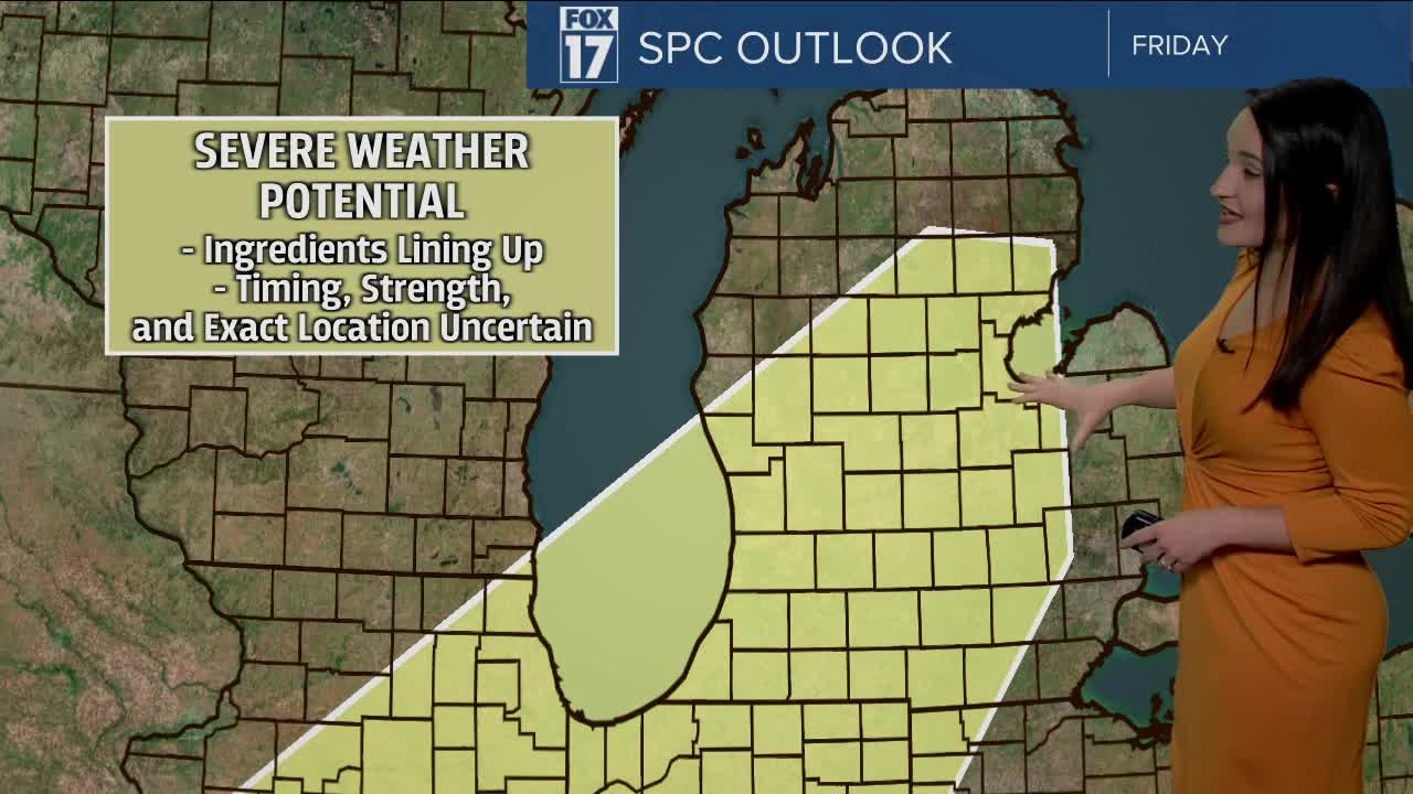 WEST MICHIGAN — The forecast from FOX 17 Meteorologist Haleigh Vaughn: Mostly clear skies and cool temperatures are in store for West Michigan tonight. Tuesday begins mostly sunny to partly cloudy with clouds building by mid/late evening. A weak system takes aim at West Michigan overnight Tuesday into Wednesday. A few showers are possible on Wednesday with mostly cloudy skies. Cooler air settles in this week, with high temperatures expected to return to the 60s Tuesday and Wednesday. Temperatures rebound on Thursday, returning to the mid 70s. The thermometer hits it's highest point this week on Friday, with highs in the lower 80s. Along with the heat, perhaps more storms will arrive on Friday afternoon and evening. Most of lower Michigan is already in a severe weather outlook for possible storms on Friday, so make sure to stay up on later forecasts as we draw closer to this event. For the latest forecast and immediate severe weather alerts, you can always download the free FOX 17 Weather App.