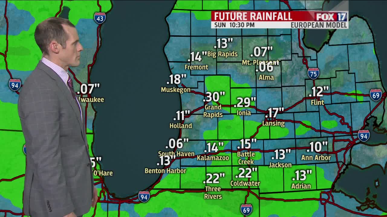 WEST MICHIGAN — The forecast from FOX 17 Meteorologist Ty Shesky: **A freeze warning takes effect at 11pm tonight and goes through 9am Saturday morning for most of West Michigan.** An upper level low rotating through eastern Ontario/western Quebec will finally pull away from the region tomorrow, allowing a bit of recovery in temperatures with a small ridge of high pressure settling in for the day. A new system will quickly come in from the west on Sunday, however, giving us some damp weather to end the weekend.