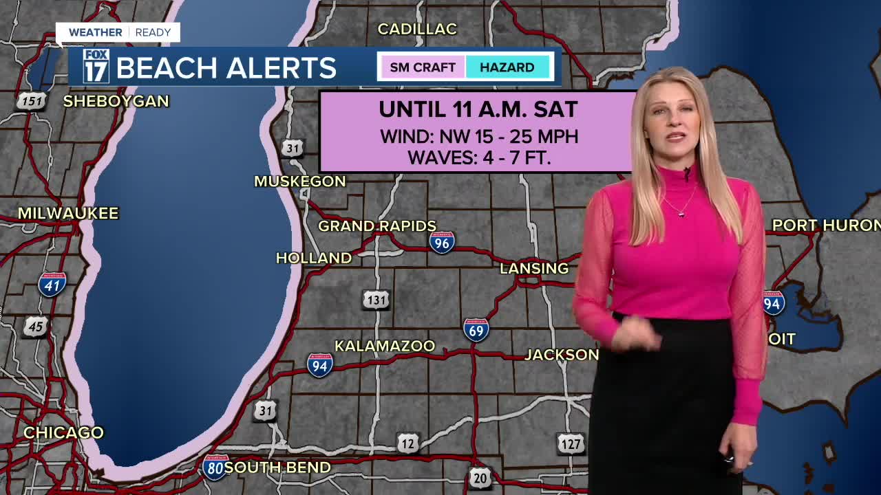 The forecast from FOX 17 Weather Ready Meteorologist Kara James: It will be partly to mostly cloudy behind the cold front and cool overnight with lows in the mid-40s. A SMALL CRAFT ADVISORY is in effect through Saturday at 11 a.m. for waves 4-7 feet and breezy northwest winds. Saturday will be near average, with a mix of sun and clouds and highs in the mid-60s. Sunday will be in the upper 60s with temperatures early next week back into the 70s, above average once again. Isolated rain chances are possible late next week, but are far from a slam dunk. Drought conditions will continue to worsen. Stay with the FOX 17 Weather Ready Team for your latest forecast updates.