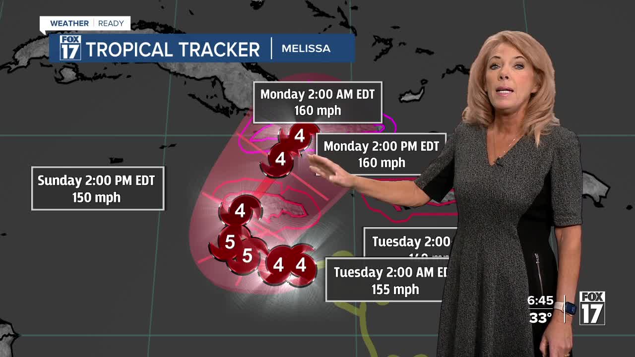 WEST MICHIGAN — The forecast from FOX 17 Weather Ready Meteorologist Terri DeBoer: It's another frosty morning across West Michigan. Plenty of sunshine will fill the skies across West Michigan today, with afternoon highs expected to reach the low-mid 50s. The pattern remains dry and slightly cooler than "average" through the middle of the week, with high temperatures holding in the low 50s and lows in the mid 30s. No major storms are on the horizon for West Michigan anytime soon. At this point, a few showers are possible for Halloween. A major hurricane is taking aim on Jamaica. Hurricane Melissa will cause massive devastation on Jamaica; eventually moving toward Eastern Cuba, Haiti and the Dominican Republic. Stay with the FOX 17 Weather Ready Team for your latest forecast updates.