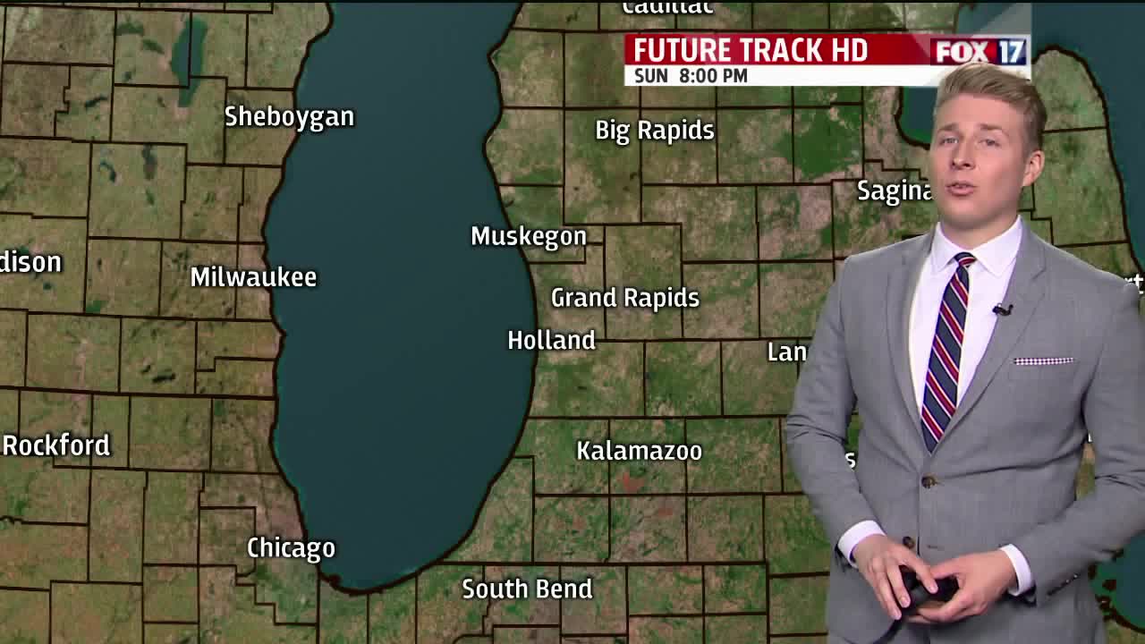 WEST MICHIGAN — The FOX 17 forecast from Meteorologist Erik Kostrzewa: After a day in the upper 40s, we add another ten degrees to today's high temperatures on Sunday! This comes along with another mainly sunny day. Most will fall just short of 60° but a few locations around and south of I-96 could make it. It would be the first 60° day of the year and of the decade. Modnay remains warm in the middle 50s but we lose a lot of the sun and add rain showers, especially Monday evening.