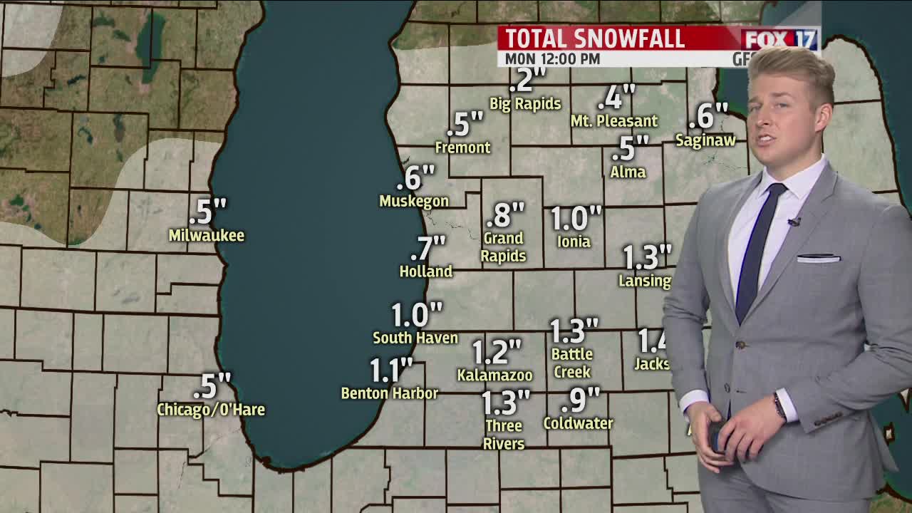 WEST MICHIGAN — The forecast from FOX 17 Meteorologist Erik Kostrzewa: High pressure will settle in tonight and tomorrow bringing decreasing clouds and chilly temperatures. A disturbance developing to our west Sunday morning will move eastward and impact us with a chance of rain and snow on Sunday night. Light accumulation is possible, with the best chance of that happening along and south of I-96. After the taste of winter is gone, spring temperatures return Monday and beyond.