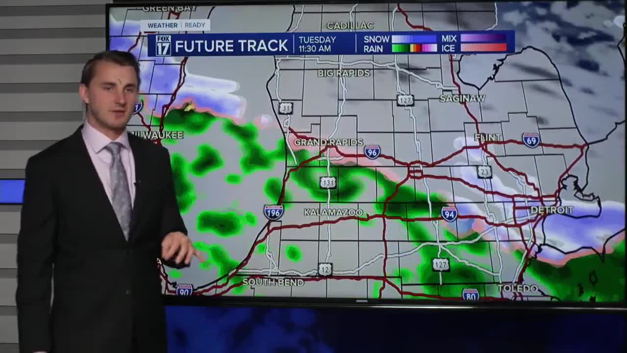 WEST MICHIGAN — The forecast from FOX 17 Meteorologist Reece Cole: A system passing through is drawing in some cold air brings a wintry mixture of rain and snow this morning, continuing through the day. A WEATHER READY ALERT has been issued for this wintry weather. Light snow is more likely north of I-96, but even there accumulations will be low, less than 1". The impacts for the wintry mix are mainly for poor road conditions, especially bridges and overpasses. Tuesday's highs will only reach the upper 30s. Wednesday will be dry, with highs back in the mid-40s. A late-week system will produce scattered rain showers later Thursday into Friday, but chances are not high for widespread soaking showers. There are no "major" storms are on the horizon until at least next week. Stay tuned to FOX 17 for your latest forecast.