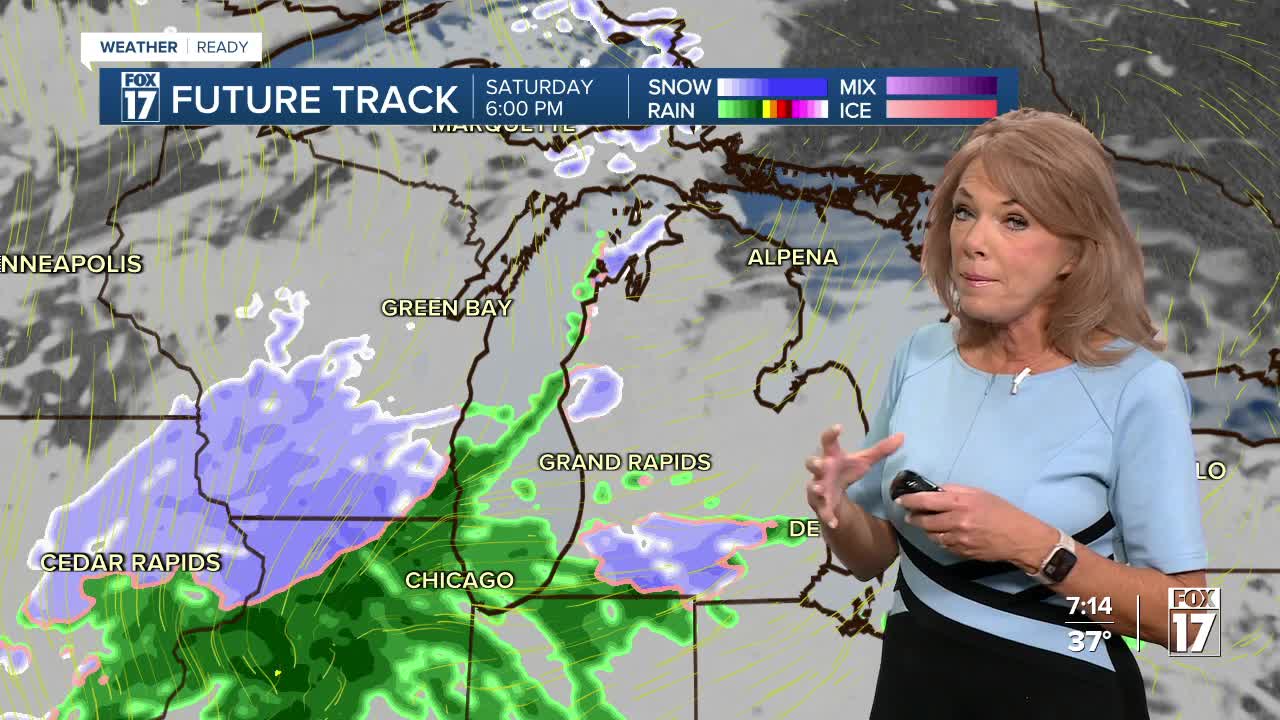 WEST MICHIGAN — The forecast from FOX 17 Weather Ready Meteorologist Terri DeBoer: Much of our Saturday will be dry, with rain (or a wintry mix) arriving after sunset. Clouds will quickly thicken, with highs in the mid-40s. Rain or a wintry mix arrives Saturday evening, followed by sharply colder air for Sunday and Monday. Widespread rain-snow will wind down early Sunday, with colder air bringing the first round of Lake Effect Snow Showers for Sunday and Monday. Areas along and West of US-131 will have the best chance for accumulation, with portions of Western Allegan, Van Buren, Berrien and Cass counties likely receiving at least 1-3 inches of snow. The "average" first snow in Grand Rapids is November 8, so this would be right on schedule. Accumulations may be slushy, but are possible! What we actually measure may be different than what falls! Stay with the FOX 17 Weather Ready Team for your latest forecast updates.