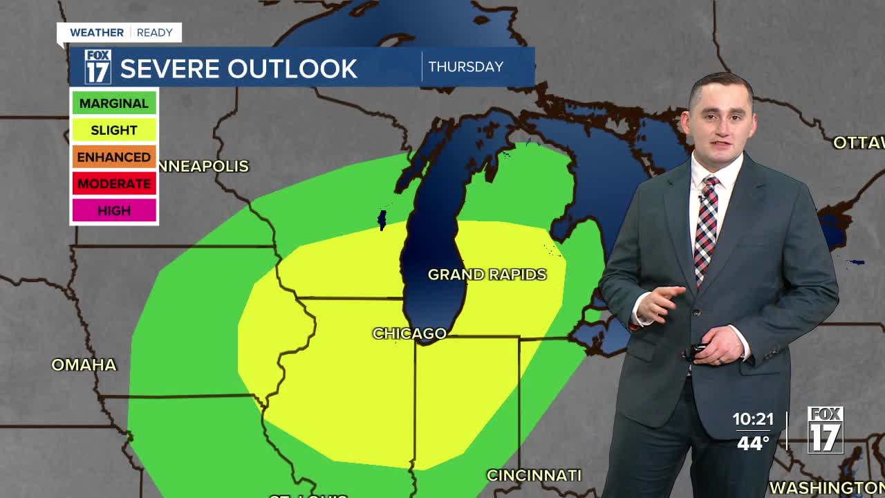 WEST MICHIGAN — FOX 17 has issued a Weather Ready Alert for Thursday due to the risk for strong to severe thunderstorms in West Michigan. This will be as a cold front comes into the area later in the day.